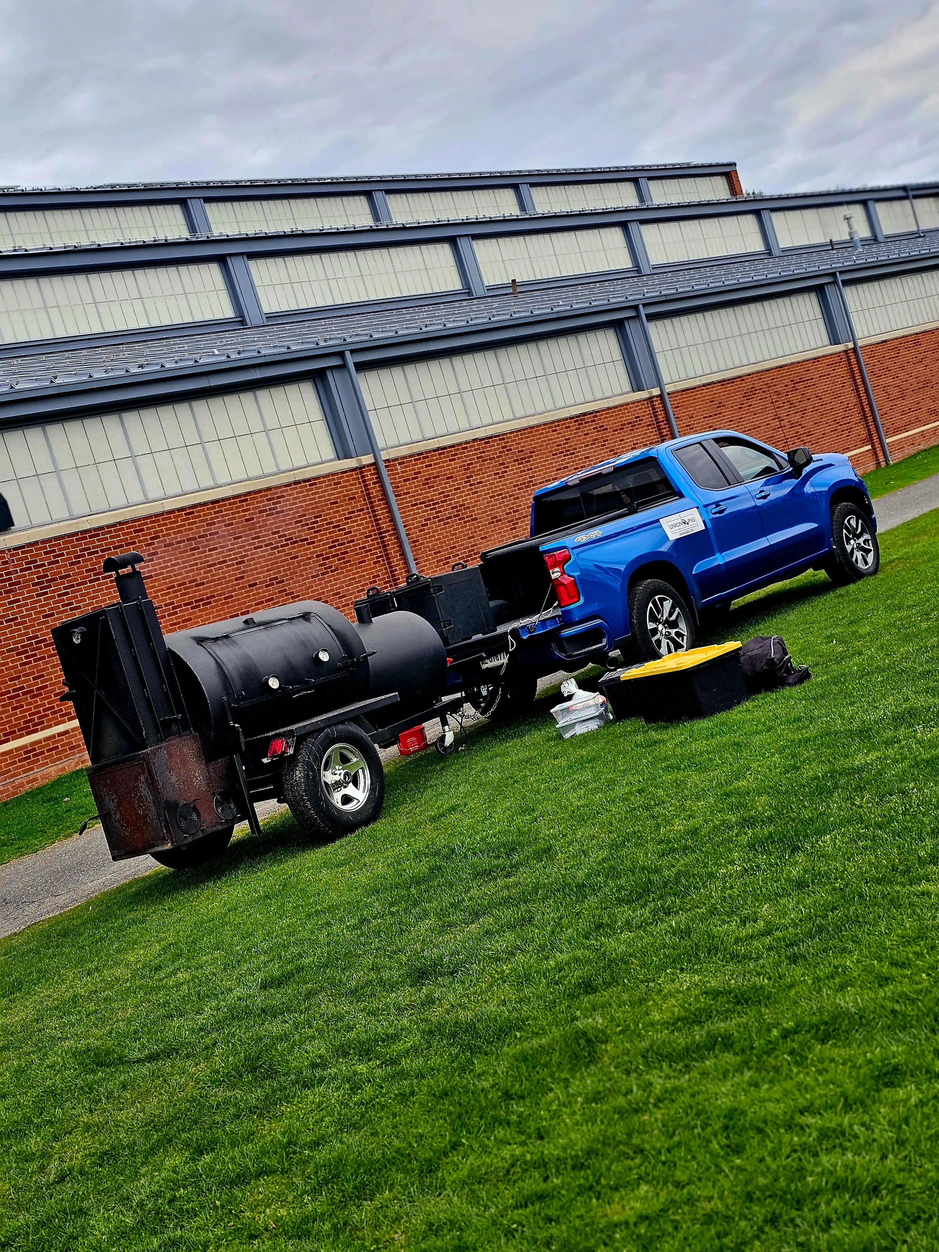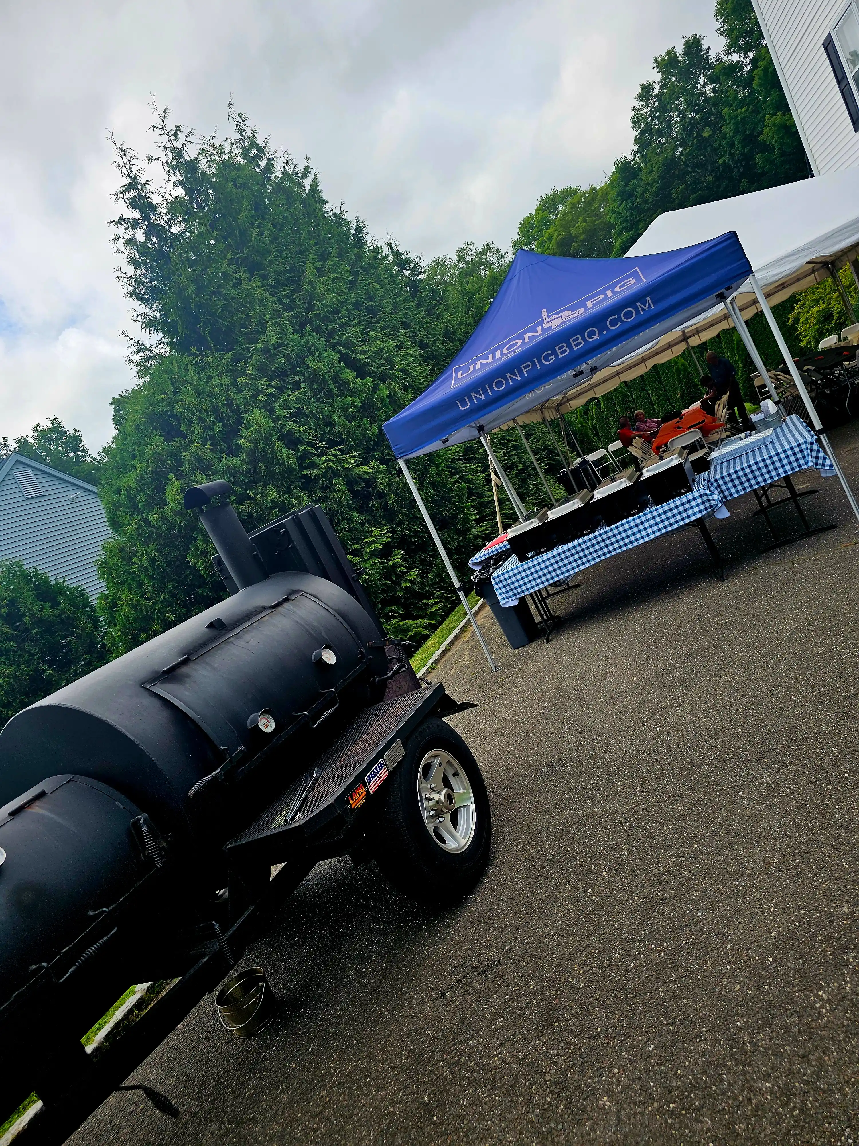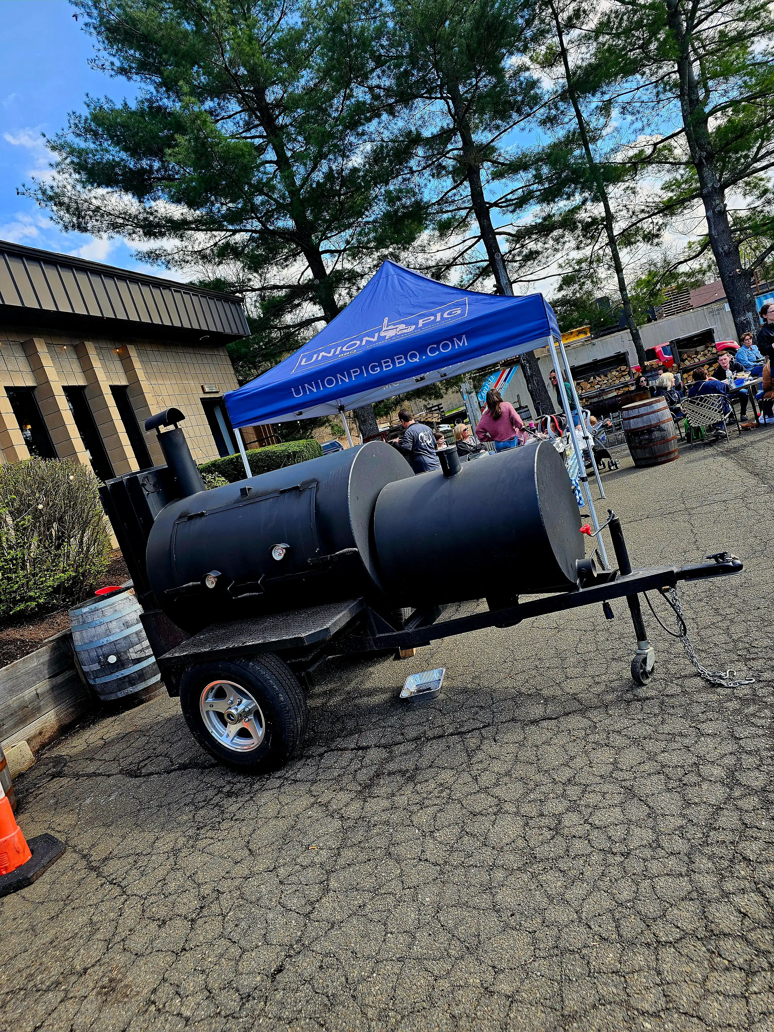 Lang BBQ Smokers®, made in Nahunta, Georgia since 1988, are the originators of the reverse flow, off-set firebox design. Built with heavy 1/4-inch plate steel, these "stick burners" circulate clean, even heat around the meat — sizzling off fat for a healthy, lean barbecue flavor. Kevin's 84 Fat Boy model also features a side char-griller, perfect for steaks, oysters, vegetables, and more.
