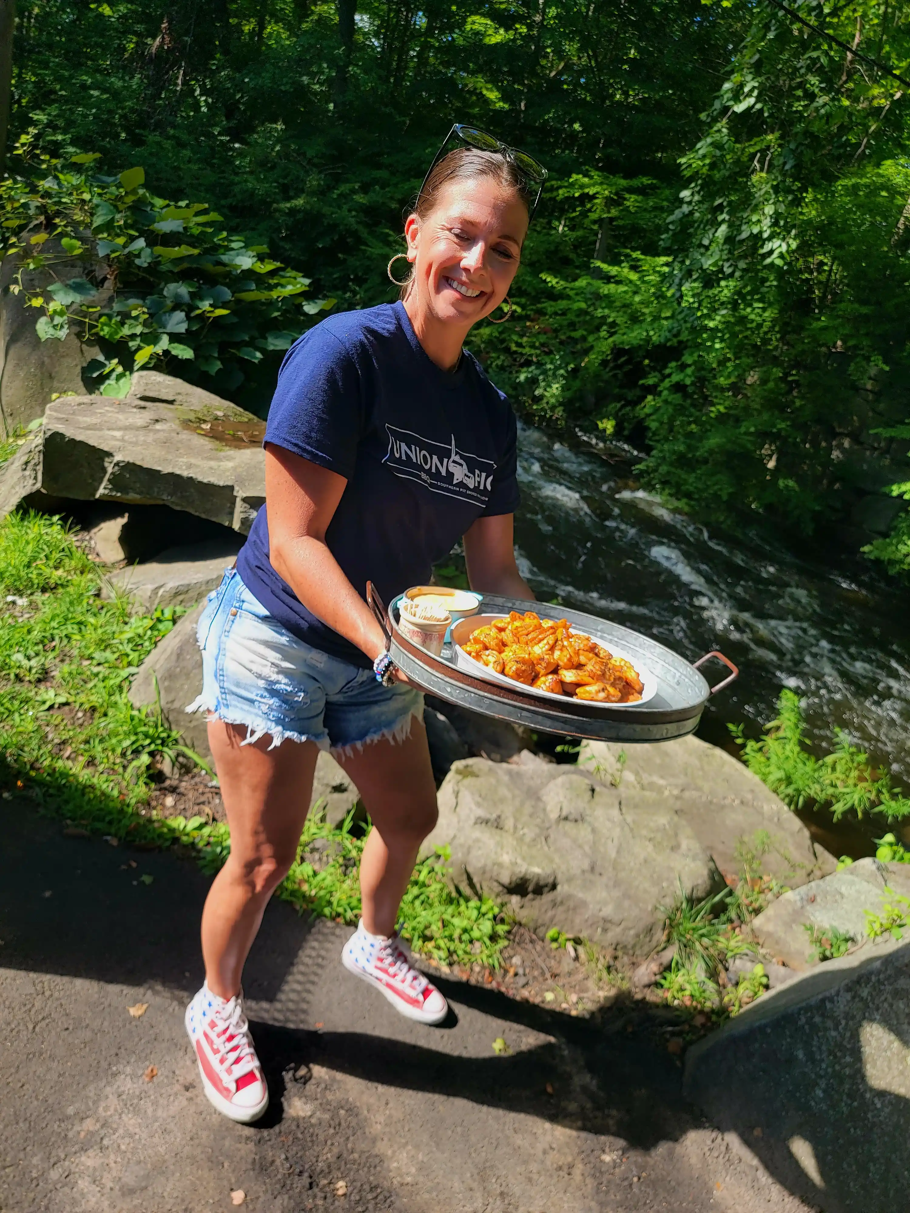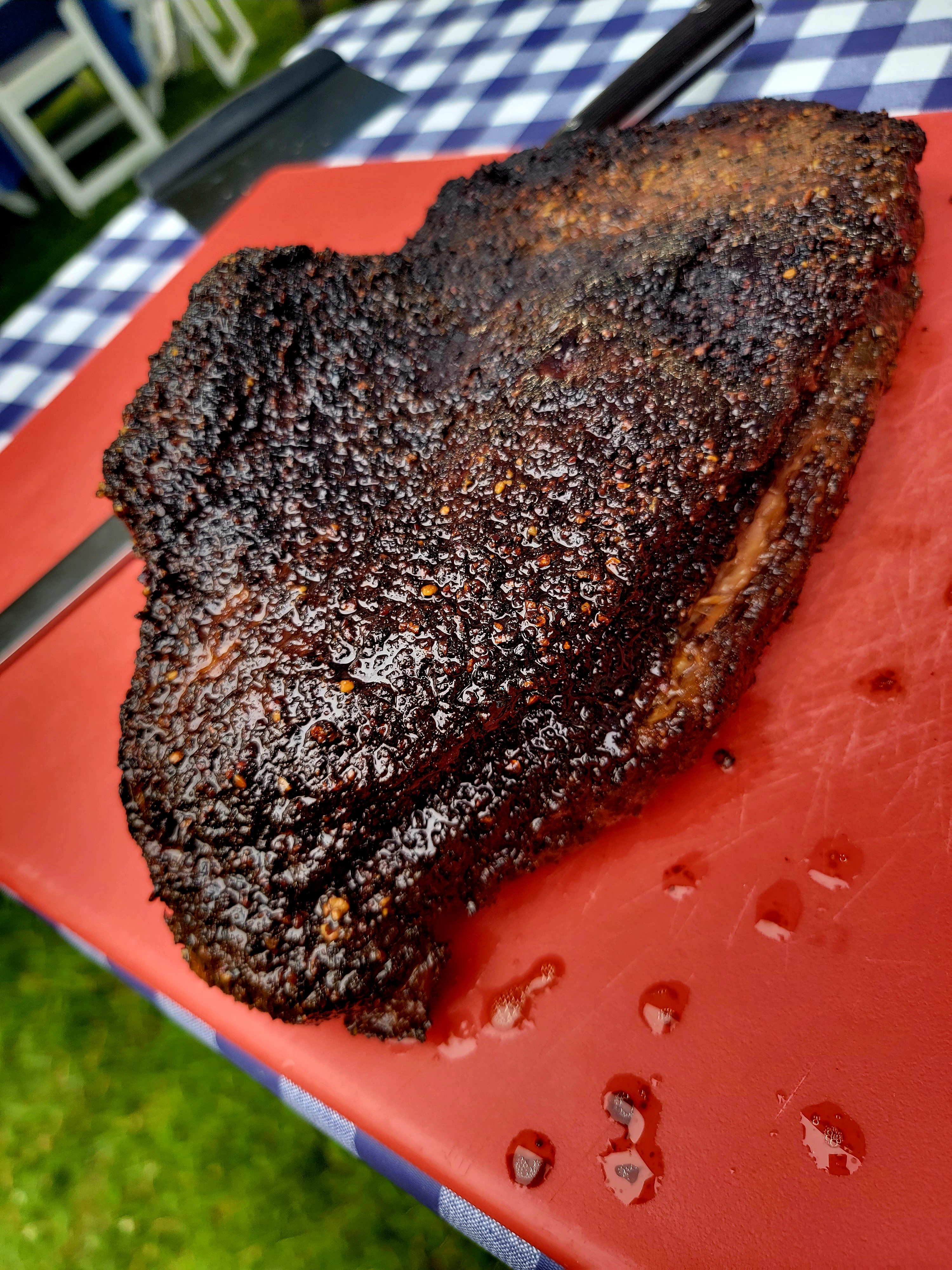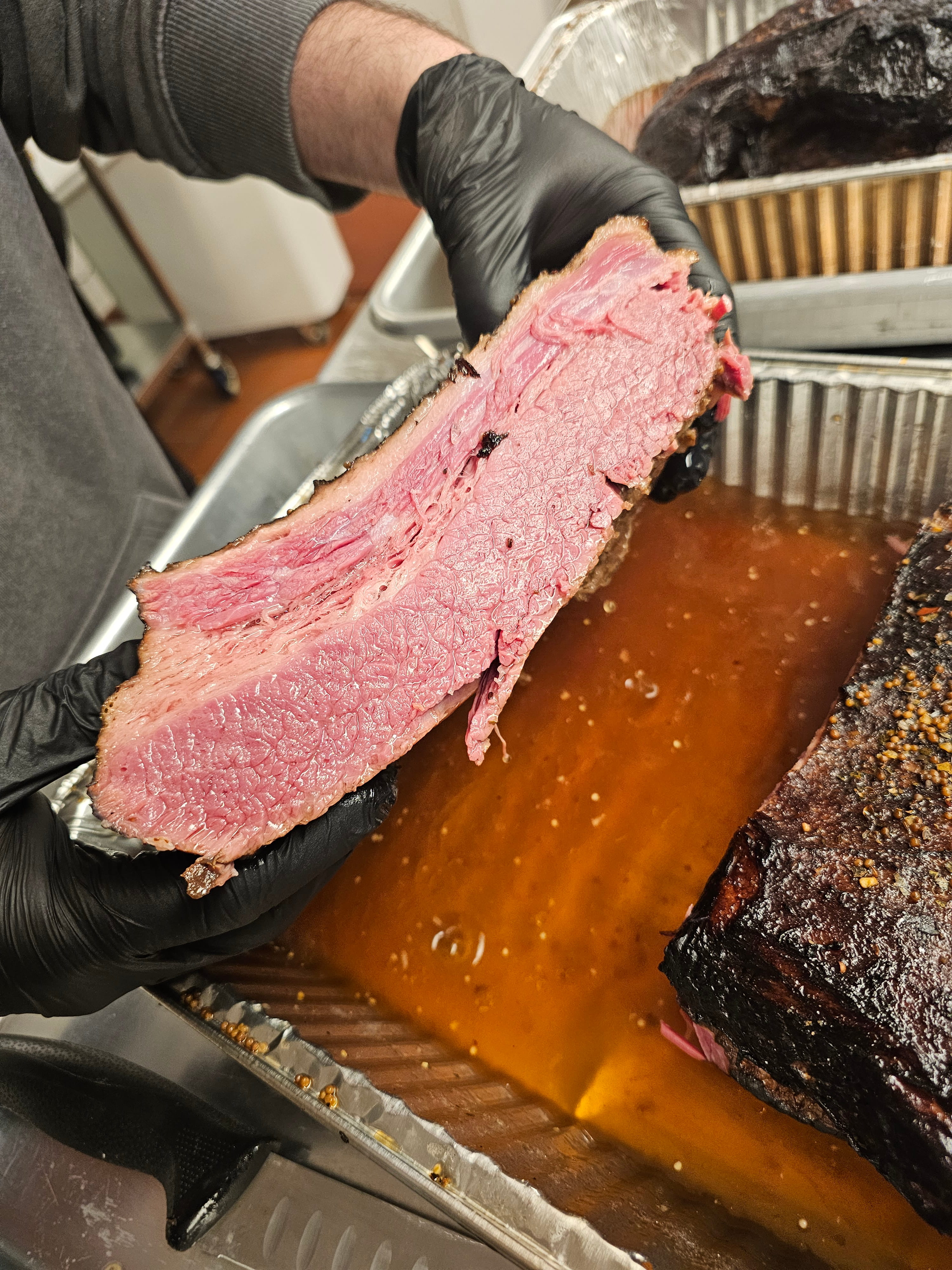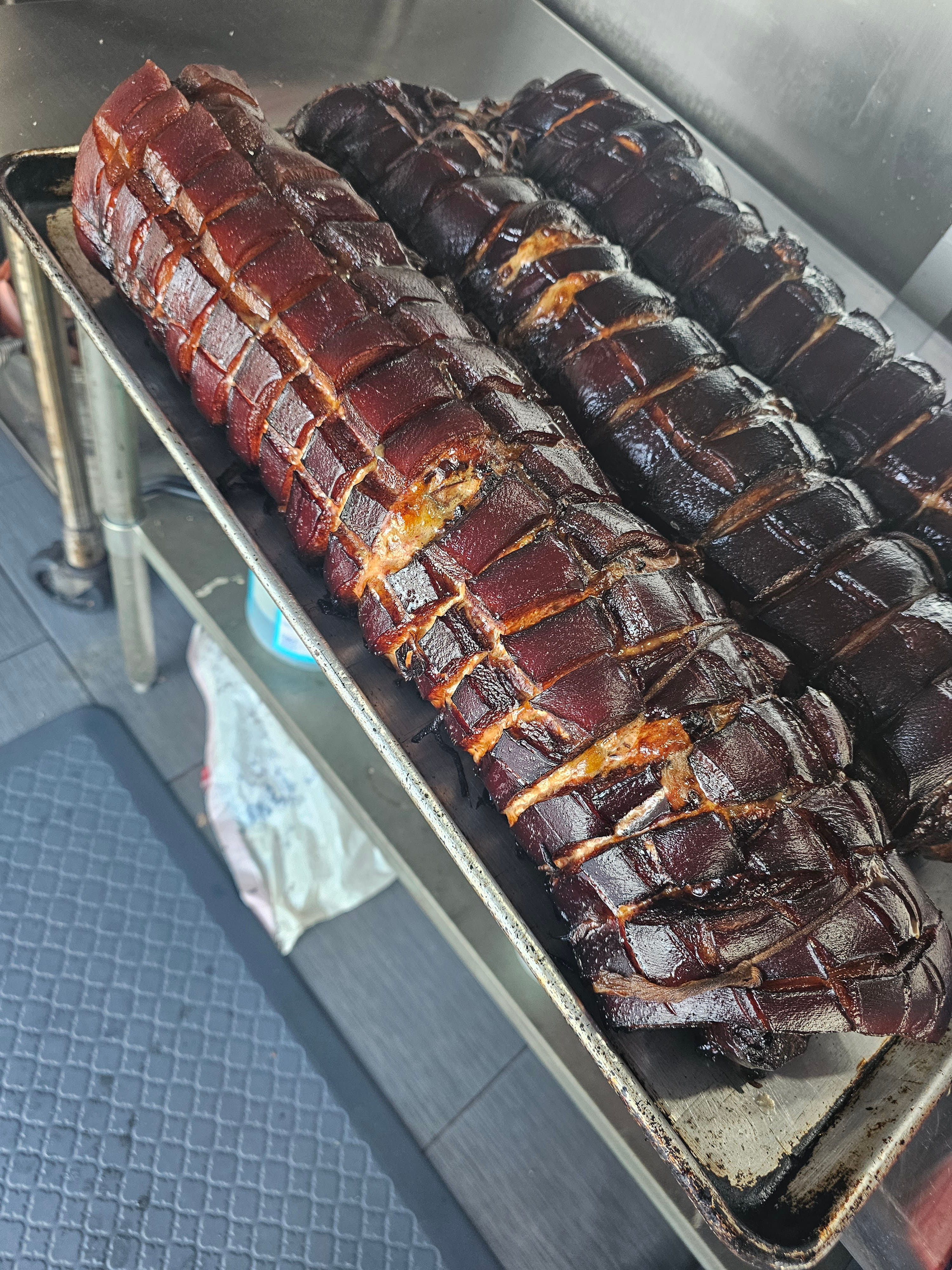 Lang BBQ Smokers®, made in Nahunta, Georgia since 1988, are the originators of the reverse flow, off-set firebox design. Built with heavy 1/4-inch plate steel, these "stick burners" circulate clean, even heat around the meat — sizzling off fat for a healthy, lean barbecue flavor. Kevin's 84 Fat Boy model also features a side char-griller, perfect for steaks, oysters, vegetables, and more.